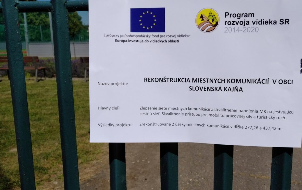 Projekt spolufinancovaný zo zdrojov EUČíslo projektu 072PO130117Zlepšenie site miestnych komunikácií a skvalitnenie napojenia MK na cestu jestvujúcu cestnú sieť. Skvalitnanie prístupu pre mobilitu pracovnej sily a turistického ruchu.