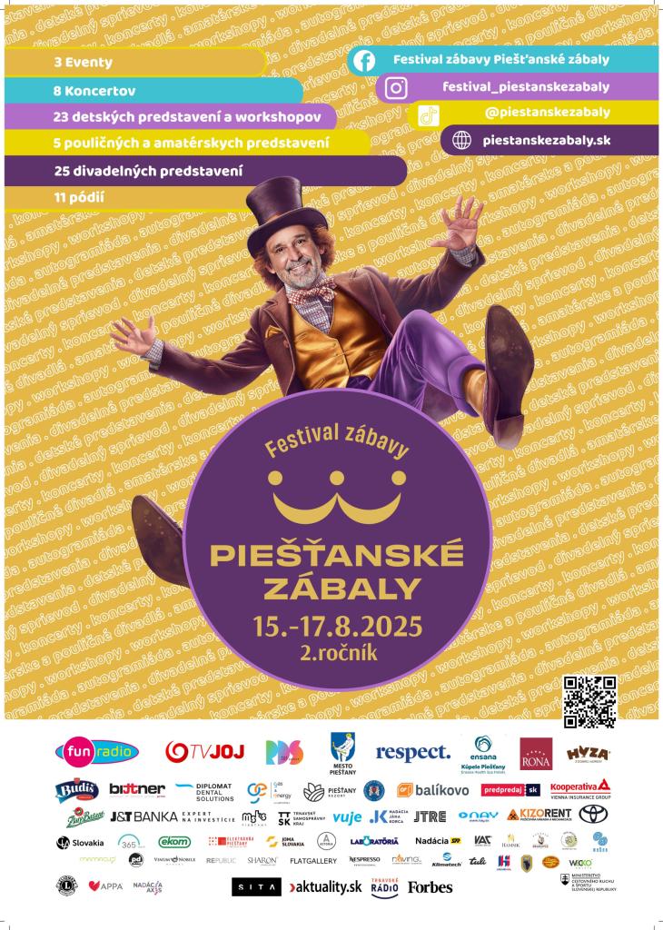 radi by sme Vám dali do pozornosti jedinečné kultúrne podujatie Festival divadla a zábavy – Piešťanské zábaly, ktorý sa uskutoční už tento týždeň od 15. do 17. augusta 2025 v Piešťanoch. Jeho filozofiou je prinášať radosť, smiech a komunitné zážitky. Druhý ročník úspešného mestského festivalu ponúkne tri dni plné kvalitného divadla, koncertov, workshopov a pouličného umenia pre celé rodiny.